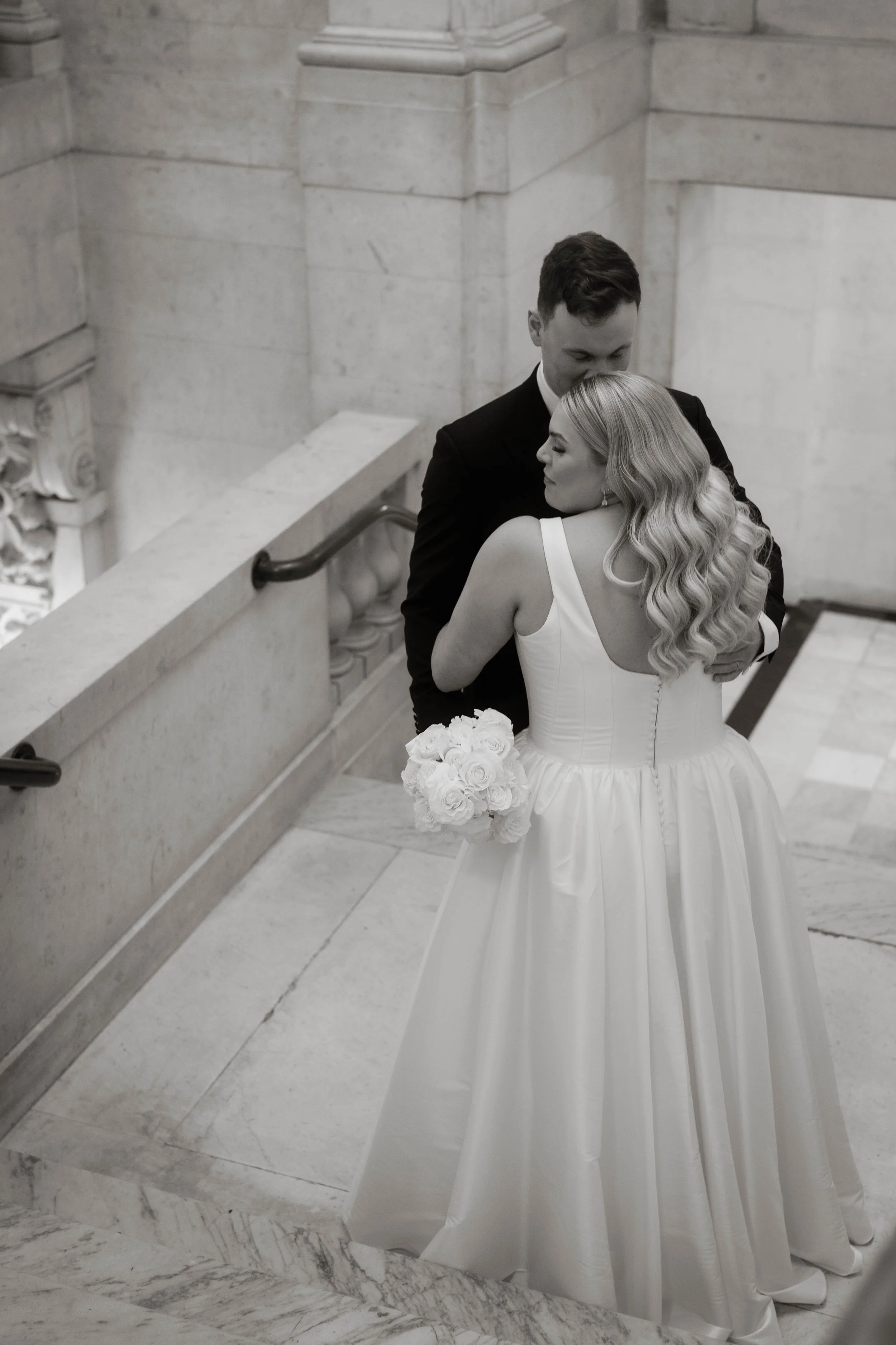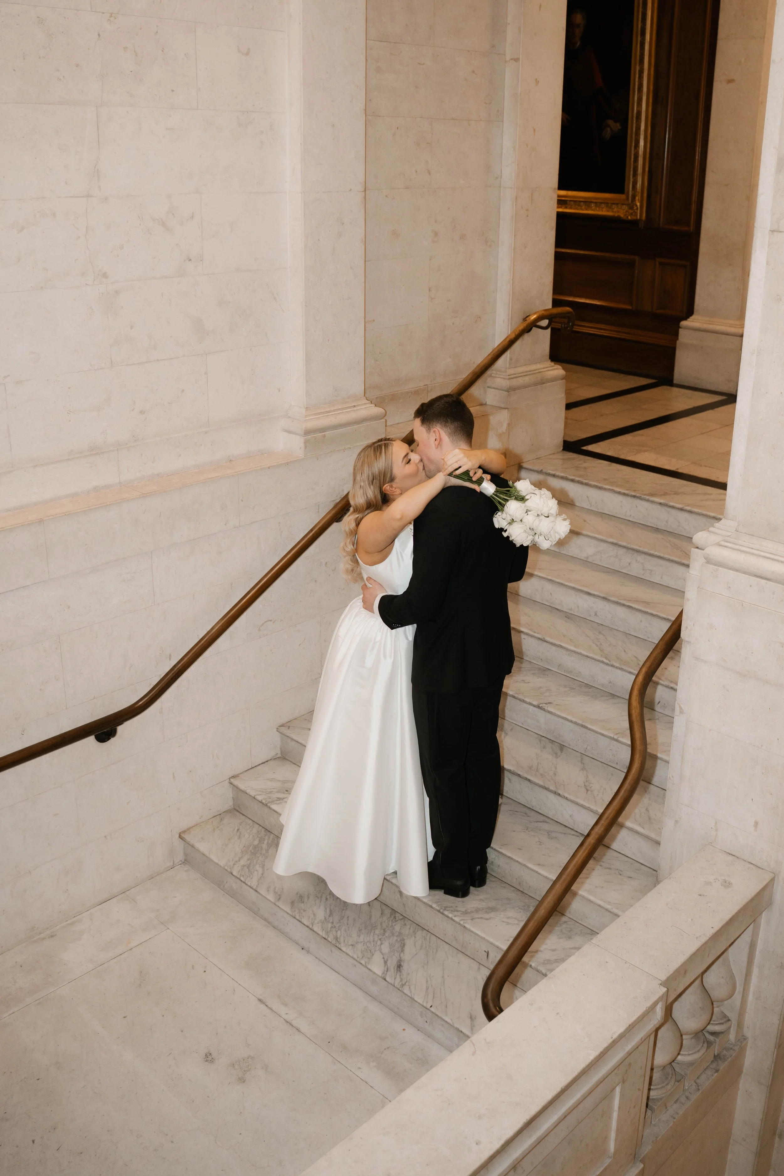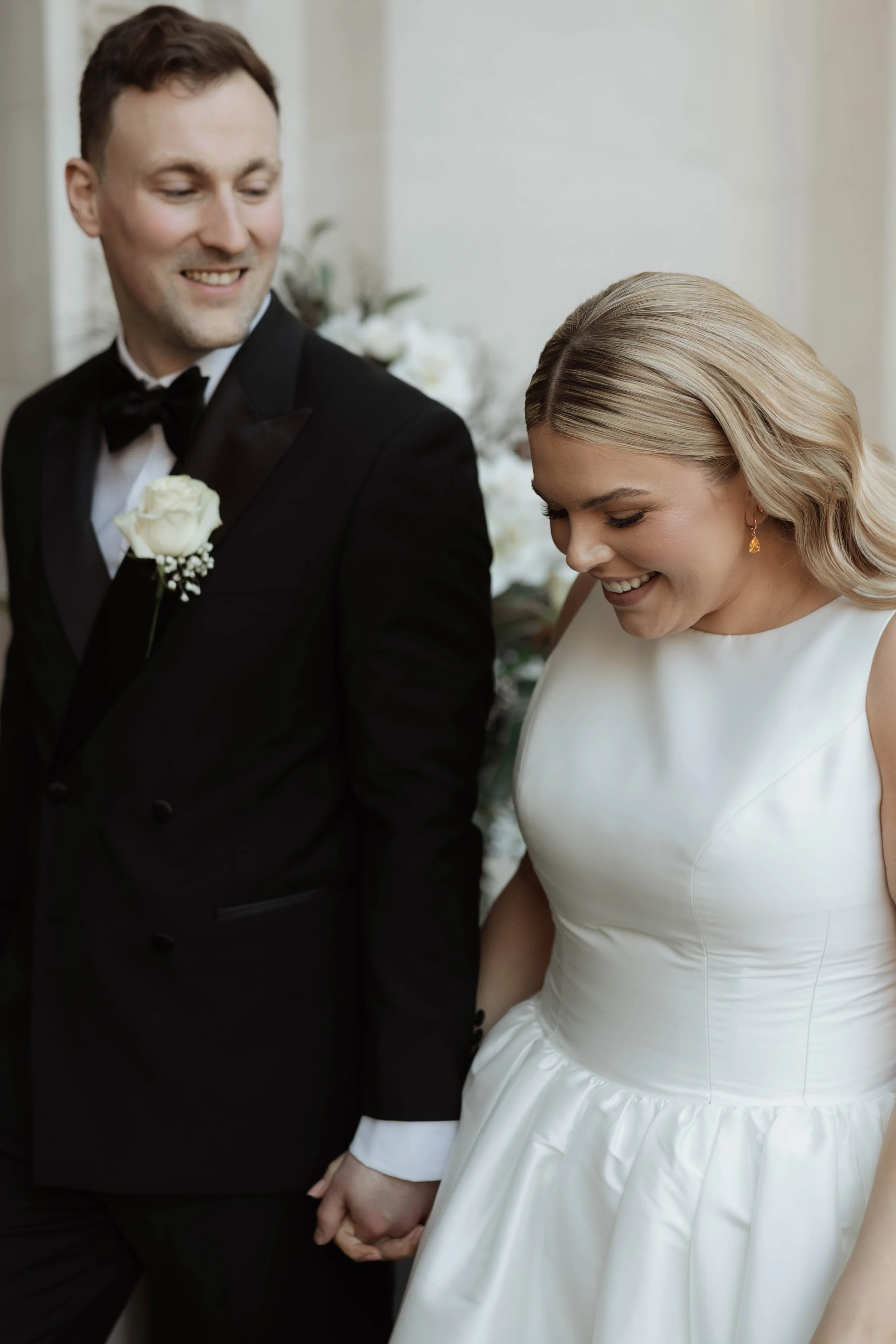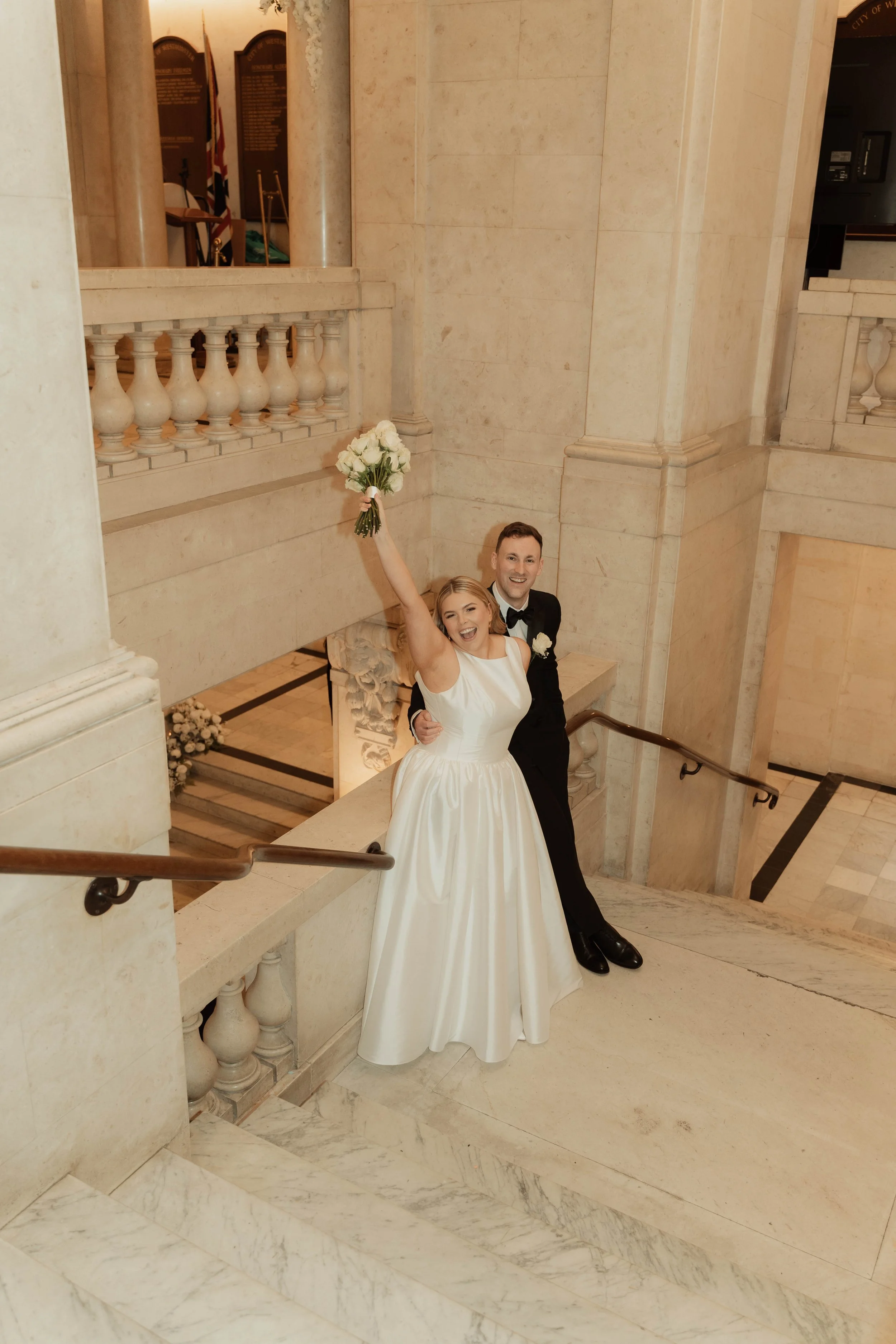 Old Marylebone Town Hall weddings can be very fast-paced, since it’s such a popular venue and they typically have back-to-back weddings. You’re usually given time to capture confetti centrally on the stairs and one group photo, then you are asked to move to the side for any additional photos. Ruby and Marc didn’t want to feel rushed on the day, so we prioritised just a handful of group photos so the remainder of our time could be spent on couple portraits to capture the iconic column shot