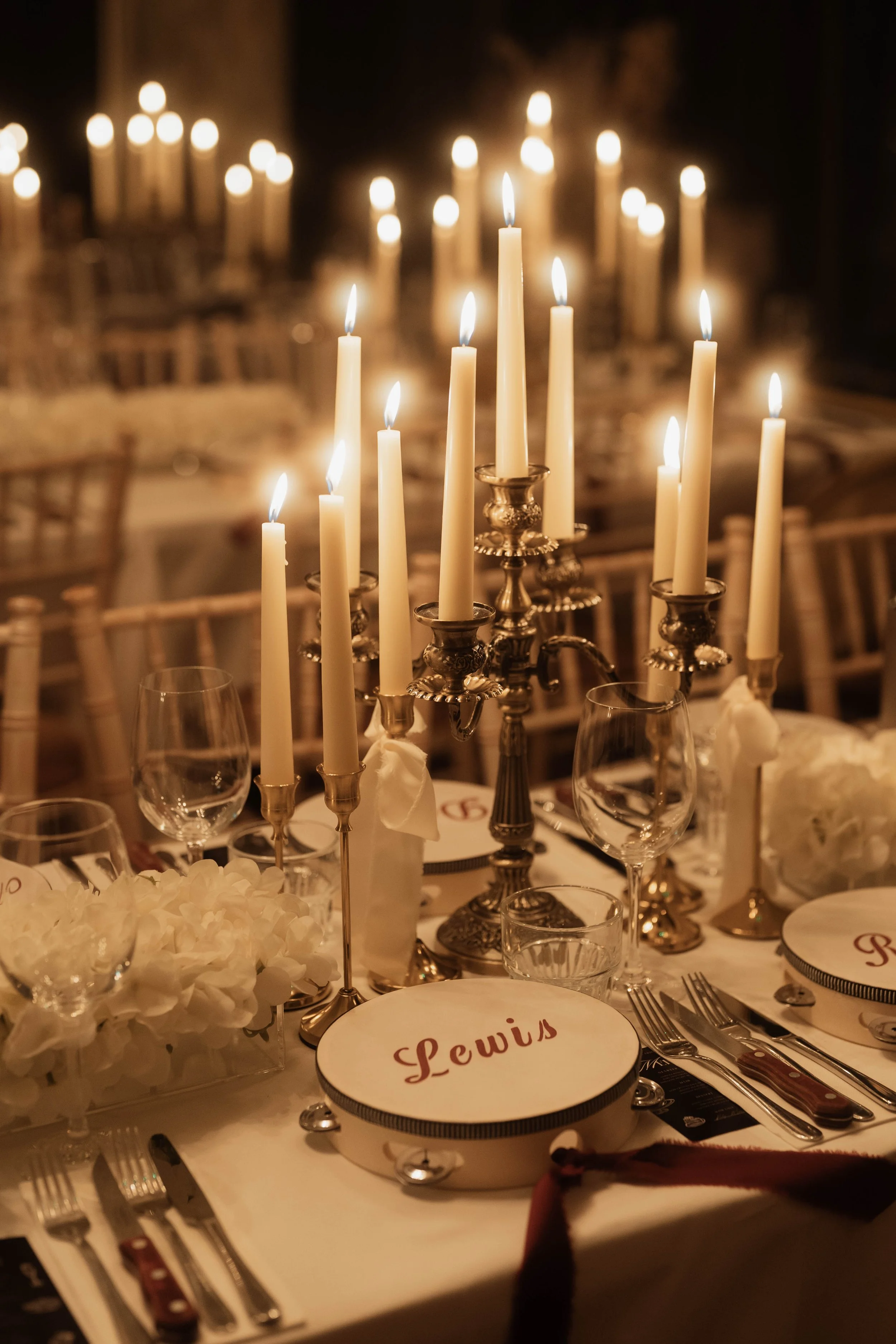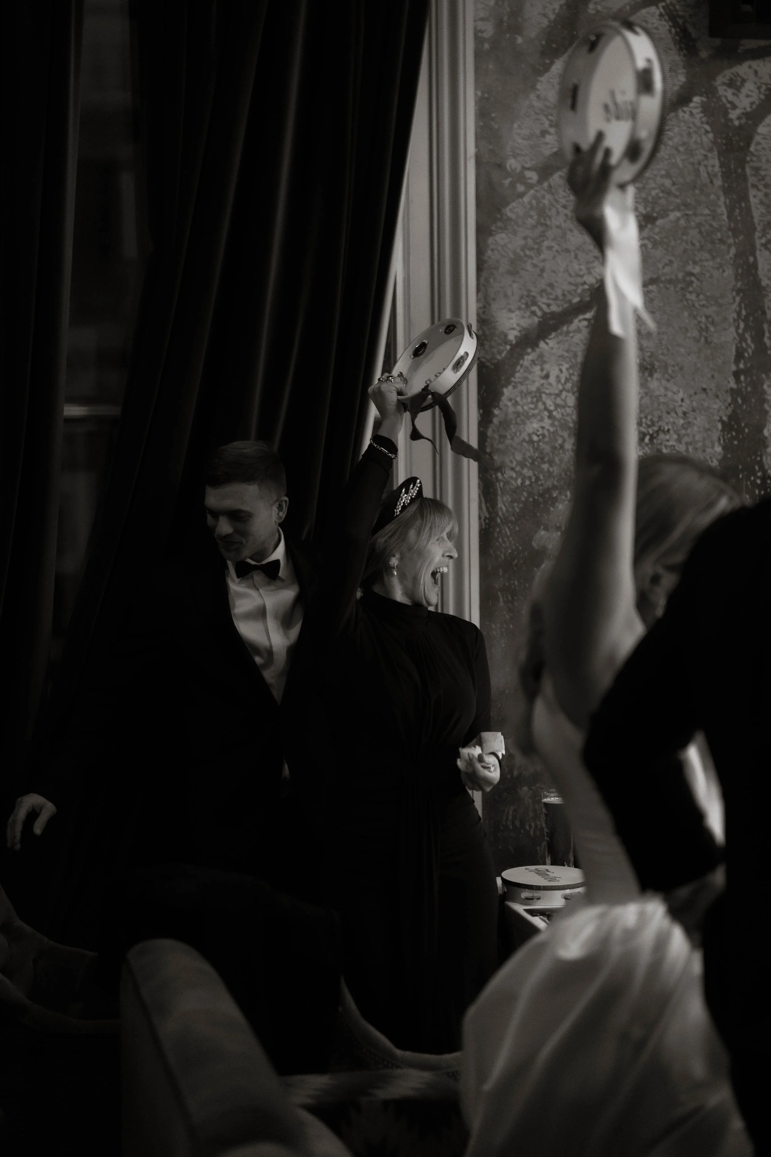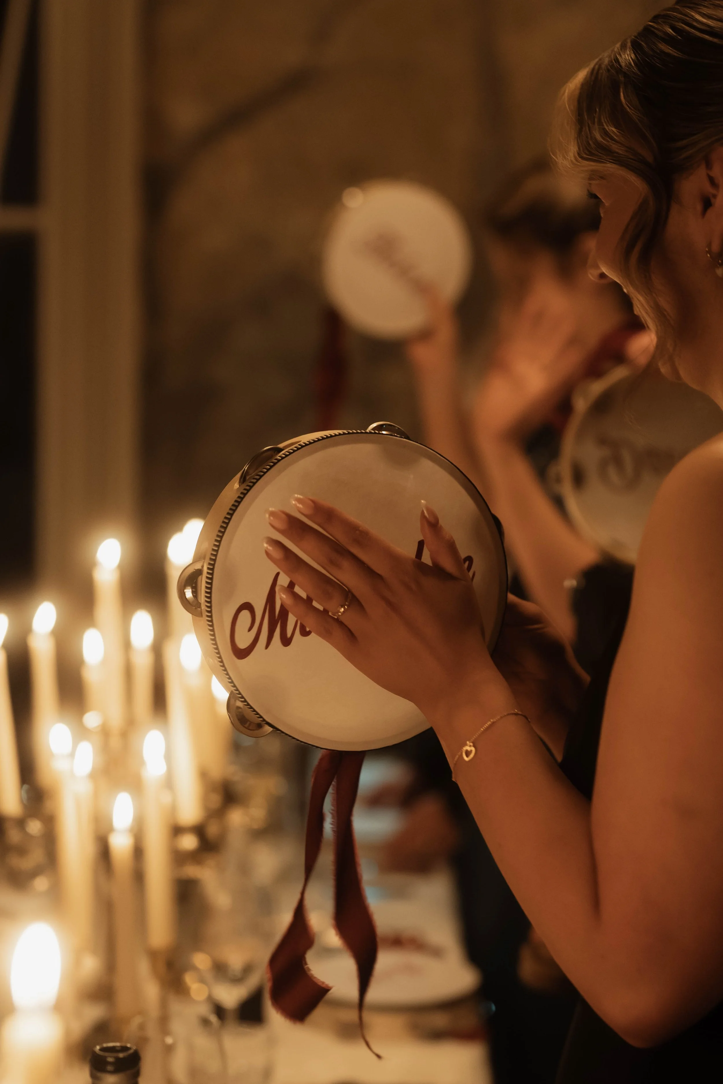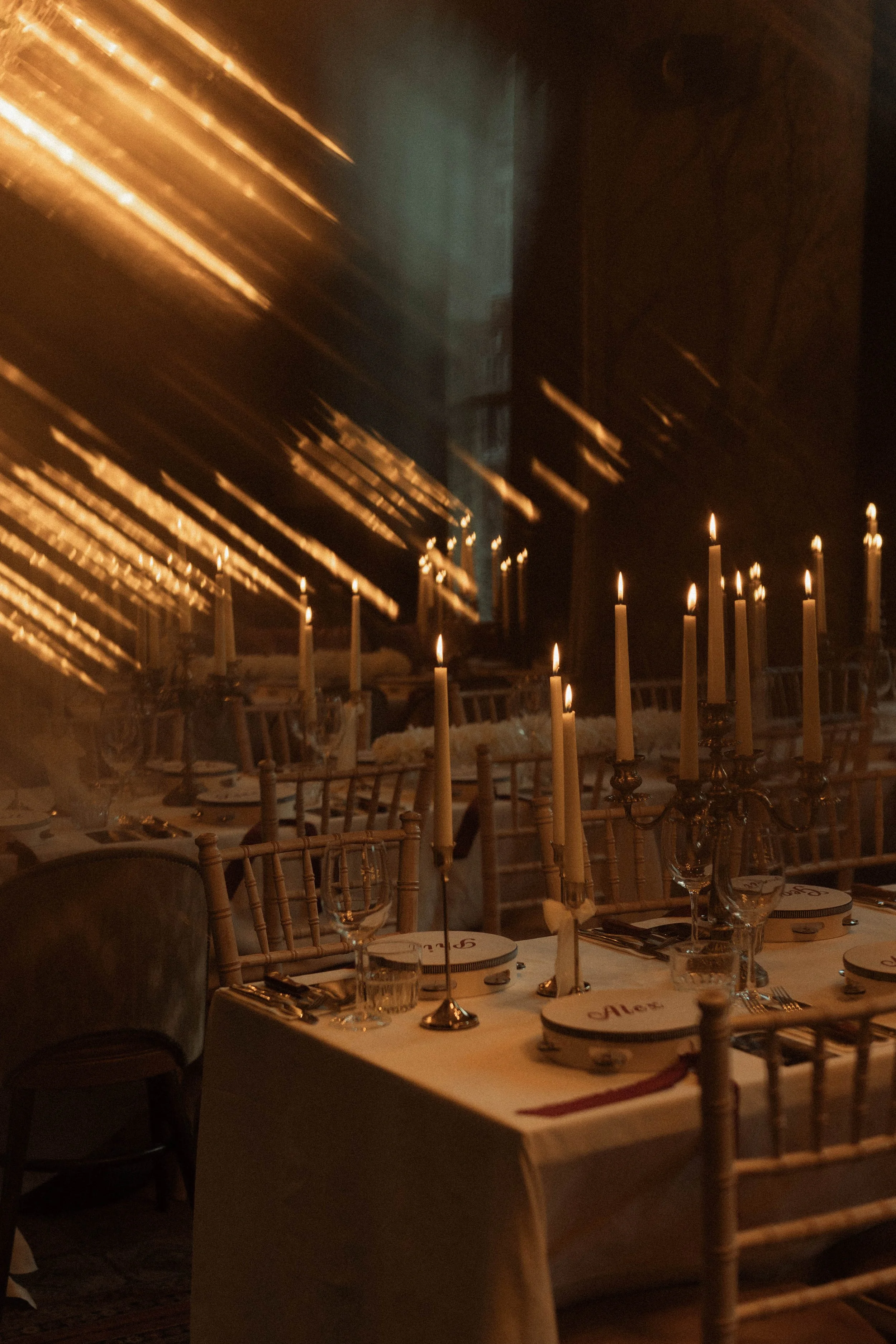 Ruby and Marc enquired with me back in 2025. They told me they were planning a big London Wedding on New Year’s Eve at two of my favourite venues: Old Marylebone Town Hall and The Hollywood Arms. They wanted their winter wedding captured with a moody, ambient feel and had seen I’d previously shot at The Hollywood Arms, which had prompted them to reach out. I was absolutely sold when Ruby told me about her decor. She was planning rows of candelabras, pops of red as an ode to the festive season, plenty of ribbons and hand-painted tambourines as her wedding favours to each of her guests, and she was most excited for images which would capture all these little details.