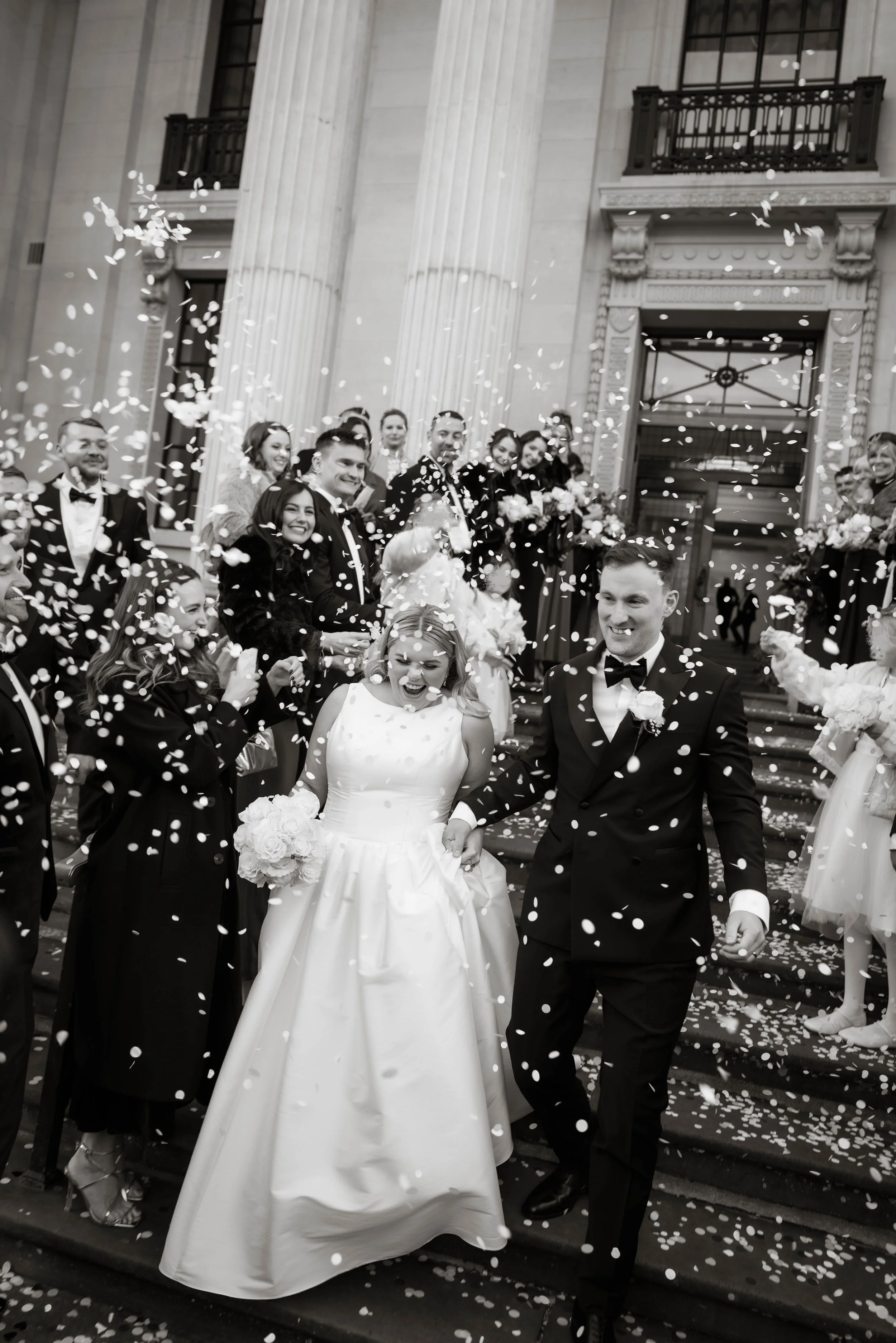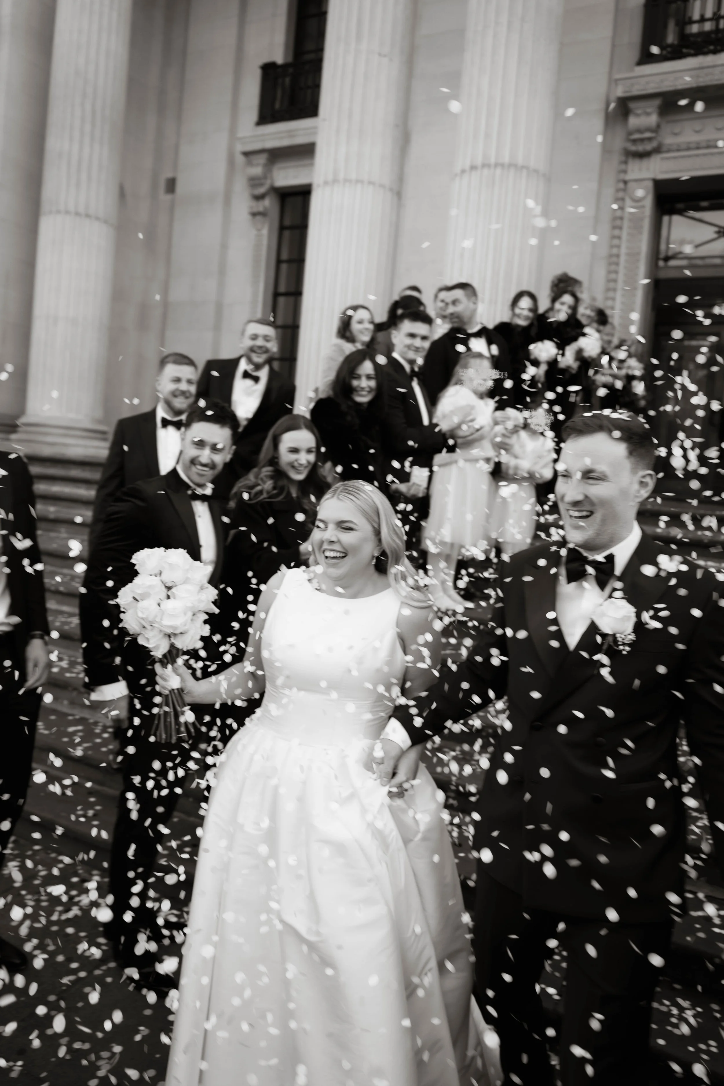 What I love about weddings at Old Marylebone Town Hall is how effortlessly cool and beautiful group and couple portraits are to capture. After the ceremony, you’re usually allotted about five minutes to make use of the halls and stairs at Marylebone before guests are ushered out, ready for confetti.