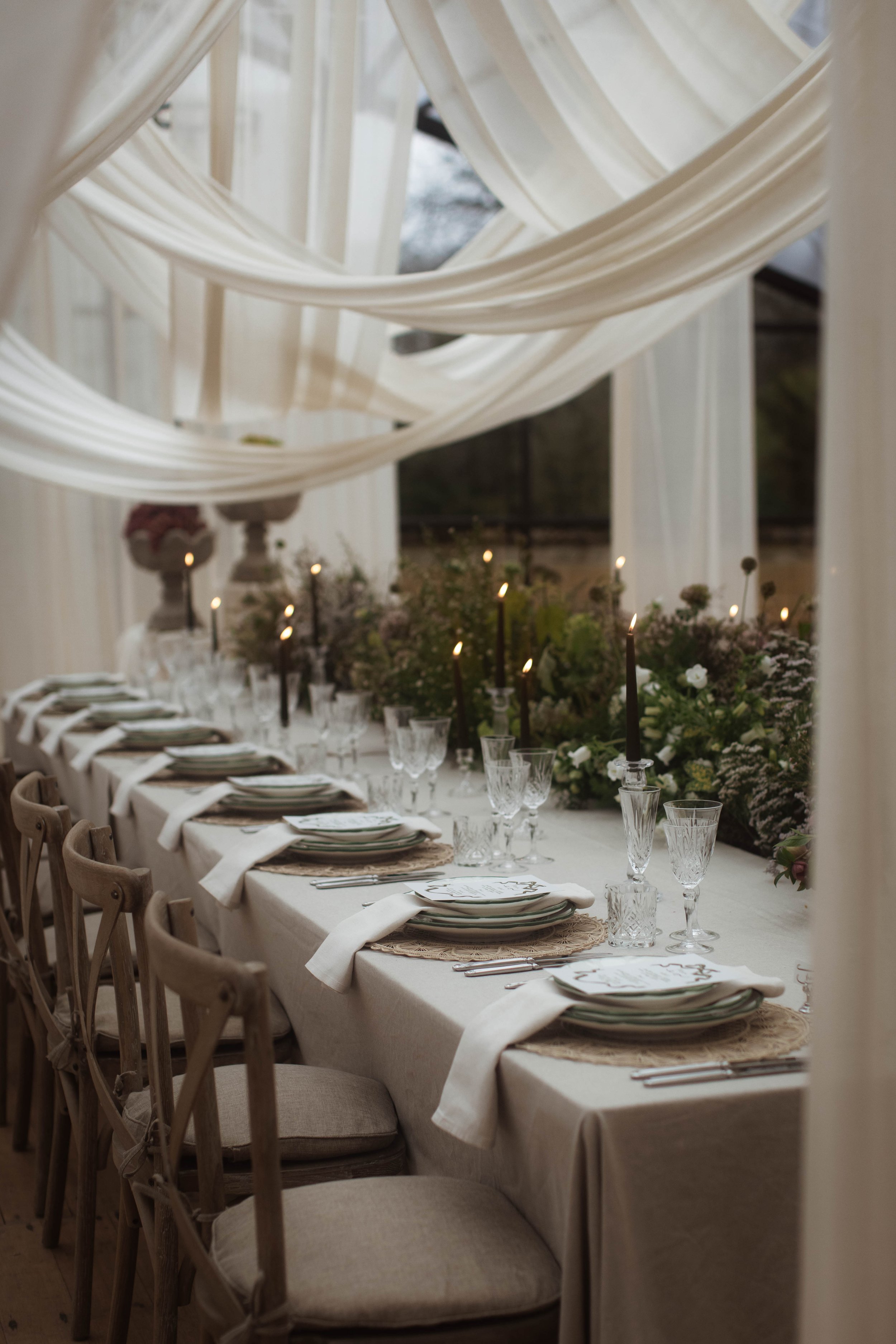 The Wedding Breakfast set-up was absolutely insane. The draping really elevated the orangery, which is the dining room at Sudeley.
